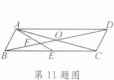 11. (2025·编写) 如图,在$\square ABCD$中,$AB= 1$,$AC= 4\sqrt {2}$,对角线$AC与BD相交于点O$,$E是BC$的中点,连接$AE交BD于点F$。若$AC⊥AB$,则$FD$的长为____。
