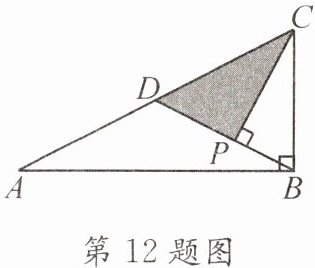 12. (2022·武侯) 如图,在$Rt\triangle ABC$中,$∠ABC= 90^{\circ }$,$AB= 6$,$BC= 3$,$BD是\triangle ABC$的中线,过点$C作CP⊥BD于点P$,则图中阴影部分的面积为____。