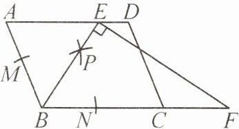 9. (2025·编写) 如图,在$\square ABCD$中,按以下步骤作图:①以点$B$为圆心,以适当长为半径作弧分别交$AB$,$BC于M$,$N$两点;②以点$M和点N$为圆心,大于$\frac {1}{2}MN$长为半径作弧,两弧交于点$P$;③作射线$BP交AD于点E$,过点$E作EF⊥BE交BC延长线于点F$。若$AB= 4$,$BC= 5$,求$CF$的长。