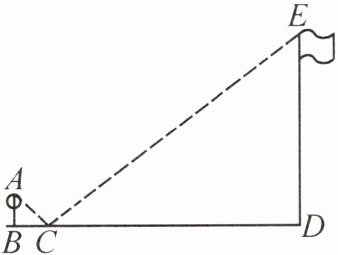 7. (2025·编写)如图,在测量旗杆高度的数学活动中,某同学在脚下放了一面镜子,然后向后退,直到他刚好在镜子中看到旗杆的顶部. 若眼睛距离地面AB= 1.5m,同时量得BC= 2m,CD= 12m,则旗杆的高度DE= ()