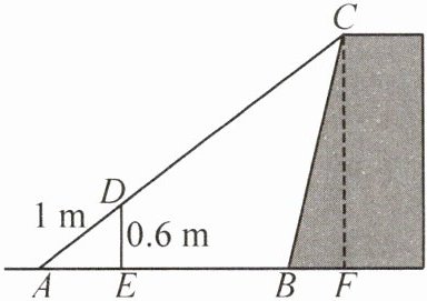 3. (2025·编写)如图,为了测量山坡的护坡石坝高,把一根长为4.5m的竹竿AC斜靠在石坝旁,量出竿上AD长为1m时,它离地面的高度DE为0.6m,则坝高CF为______m.