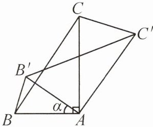 9. (2025·编写)如图,在$Rt\triangle ABC$中,$\angle BAC = 90^{\circ}$,$\frac{AC}{AB} = \frac{3}{2}$,将$\triangle ABC绕点A顺时针方向旋转角\alpha(0^{\circ} \lt \alpha \lt 90^{\circ})得到\triangle AB'C'$,连接$BB'$,$CC'$,求$\triangle CAC'与\triangle BAB'$的面积之比。