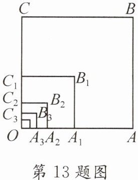 13. (2025·编写)如图,以点$O$为位似中心,将边长为$256的正方形OABC$依次作位似变换,经第一次变化后得正方形$OA_1B_1C_1$,其边长$OA_1缩小为OA的\frac{1}{2}$,经第二次变化后得正方形$OA_2B_2C_2$,其边长$OA_2缩小为OA_1的\frac{1}{2}$,经第三次变化后得正方形$OA_3B_3C_3$,其边长$OA_3缩小为OA_2的\frac{1}{2}$,……依此规律,经第$n$次变化后,所得正方形$OA_nB_nC_n的边长为正方形OABC$边长的倒数,则$n = $____。