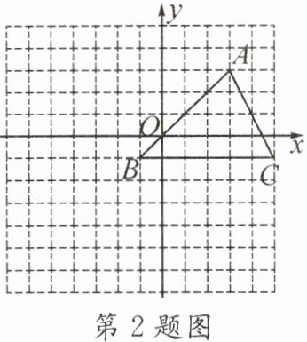 2. (2025·编写)如图,方格纸中的每一个小方格都是边长为$1$的正方形,我们把以格点间连线为边的三角形称为“格点三角形”,图中的$\triangle ABC$是格点三角形,在建立平面直角坐标系后,点$B的坐标为(-1,-1)$,在方格纸中把$\triangle ABC以点A$为位似中心放大,使放大前后对应边的比为$1:2$,则点$B的对应点B'$的坐标为____。