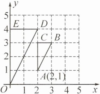 4. (1)(2025·编写)已知在平面直角坐标系中,$\triangle AOB的顶点分别为点A(2,1)$、点$B(2,0)$、点$O(0,0)$,若以原点$O$为位似中心,相似比为$2$,将$\triangle AOB$放大,则点$A$的对应点的坐标为____。