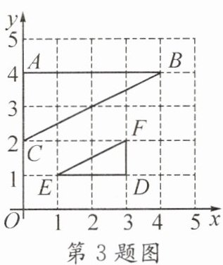 3. (2022·长春)如图,在平面直角坐标系中,$\triangle ABC与\triangle DEF$是位似图形,且它们的顶点都在格点上,则位似中心的坐标为____。