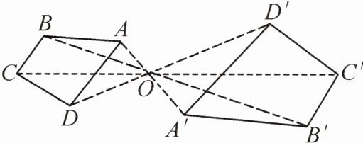 4. (1)(2025·天府新区)如图,四边形$ABCD和A'B'C'D'是以点O$为位似中心的位似图形,若四边形$ABCD与四边形A'B'C'D'的面积比为4:9$,则$OC:OC'$的值为____。