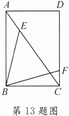 13. (2025·新都)如图,在矩形$ABCD$中,$AB= 4$,$BC= 3$,$E$,$F分别是AC$,$CD$上的动点,且$\frac{AE}{CF}= \frac{5}{3}$,连接$BE$,$BF$。当$E为AC$中点时,$BE+BF= $____;在整个运动过程中,$BE+\frac{5}{3}BF$的最小值为____。