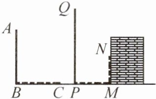 14. (2022·简阳)在同一时刻两根木杆在太阳光下的影子如图所示,其中木杆AB= 2米,它的影子BC= 1.6米,木杆PQ的影子有一部分落在墙上,PM= 1.2米,MN= 0.8米。求木杆PQ的长度。
