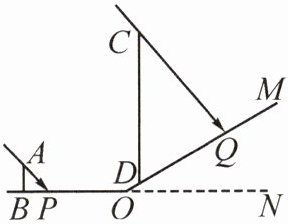 15. (2025·编写)在一个阳光明媚的上午,教数学的陈老师组织学生测量小山坡上的一棵大树CD的高度,山坡OM与地面ON的夹角为30°(∠MON= 30°),站立在水平地面上身高1.7米的小明AB在地面上的影长BP为1.2米,此刻大树CD在斜坡上的影长DQ为5米,求大树的高度.