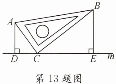 13. (2025·编写)如图,将一块含30°角的三角板ABC的直角顶点C放置于直线m上,点A、点B在直线m上的正投影分别为点D、点E,若AB= 10,BE= 3√3,则AB在直线m上的正投影的长是____.