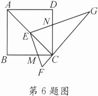 6. (2025·编写)如图,点E在正方形ABCD的对角线AC上,且EC= AE,Rt△FEG的两直角边EF,EG分别交BC,DC于点M,N。若正方形ABCD的边长为4,则重叠部分四边形EMCN的面积为()