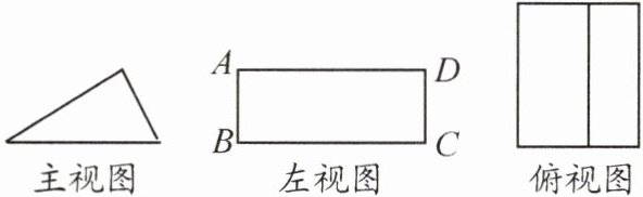 4. (2025·锦江)某三棱柱的三种视图如图所示,它的主视图是三角形,左视图和俯视图都是矩形,且俯视图的面积是左视图面积的2倍,左视图中矩形ABCD的边长AB= 3,则主视图的面积为____。