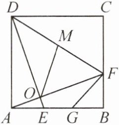15. (2024·泸州)如图,在边长为6的正方形ABCD中,E,F分别是边AB,BC上的动点,且满足AE= BF,AF与DE交于点O,M是DF的中点,G是边AB上的点,AG= 2GB,求OM+$\frac{1}{2}$FG的最小值。
