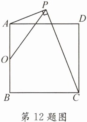 12. (2025·编写)如图,在正方形ABCD中,AB= 8,O为AB的中点,P为正方形ABCD外一动点,且AP⊥CP,则线段OP的最大值为____。