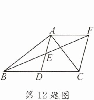 12. (2025·编写)如图,在△ABC中,∠BAC= 90°,AD是BC边上的中线,E为AD的中点,过点A作AF//BC交BE的延长线于点F。连接CF,当∠ACB= ______时,四边形ADCF为正方形;连接DF,当∠ACB= ______时,四边形ABDF为菱形。