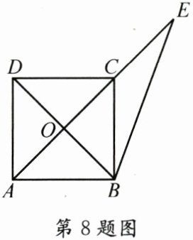 8. 如图,正方形 $ABCD$ 的边长为 2,对角线 $AC$ 与 $BD$ 相交于点 $O$,$E$ 是 $AC$ 延长线上一点,且 $OE = 2CO$,则 $BE$ 的长度是 ()