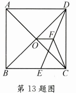 13. 如图,在正方形 $ABCD$ 中,对角线 $AC$ 与 $BD$ 相交于点 $O$,$E$ 为 $BC$ 上一点,$CE = 5$,$F$ 为 $DE$ 的中点.若 $\triangle CEF$ 的周长为 18,则 $OF$ 的长为____.