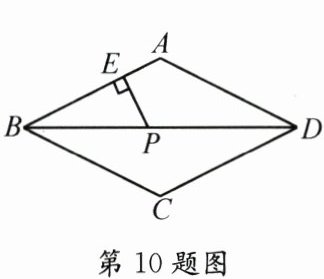 10. 如图,在菱形 $ABCD$ 中,点 $P$ 在对角线 $BD$ 上,$PE \perp AB$,垂足为 $E$,$PE = 5$,则点 $P$ 到 $BC$ 的距离是____.