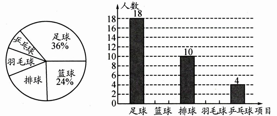 (2)根据题意,得最喜欢篮球的有$50\times24\% = 12$(人),