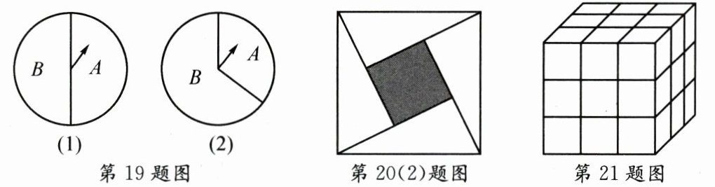 (2) 如图所示是“赵爽弦图”飞镖板,是由直角边长分别为 2 和 1 的四个直角三角形和一个小正方形(阴影部分)拼成. 某人向该游戏板投掷飞镖一次(假设飞镖落在游戏板上),则飞镖落在阴影部分的概率是 ______.