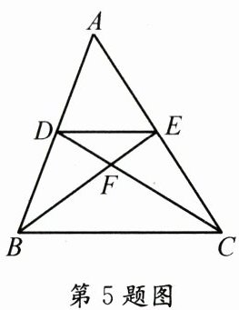 5. 如图,在 $ \triangle ABC $ 中, $ CD $, $ BE $ 分别是 $ \triangle ABC $ 的边 $ AB $, $ AC $ 上的中线,则 $ \frac{S_{\triangle DEF}}{S_{\triangle BCF}} = $ ()