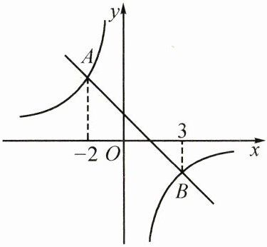 16. (7分)如图,一次函数$y= ax+b的图象与反比例函数y= \frac{k}{x}的图象相交于A$,$B$两点,其中点$A的坐标为(-2,3)$,点$B的坐标为(3,n)$.