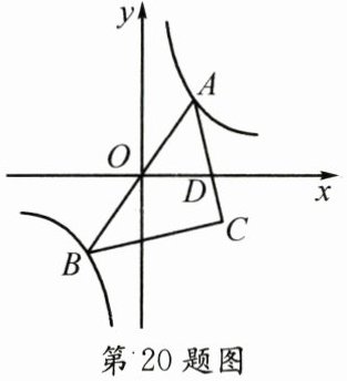 20. 如图,反比例函数$y= \frac{k}{x}的图象经过点(-1,-2\sqrt{2})$,$A$是该图象第一象限分支上的动点,连接$AO并延长交另一分支于点B$,以$AB为斜边作等腰直角三角形ABC$,顶点$C$在第四象限,$AC与x轴交于点D$.当$\frac{AD}{CD}= \sqrt{2}$时,点$C$的坐标为______.