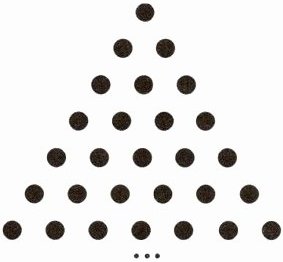 所以三角点阵中前$n$行的点数之和为$1+2+3+\cdots +n=\frac {n(n+1)}{2}.$
