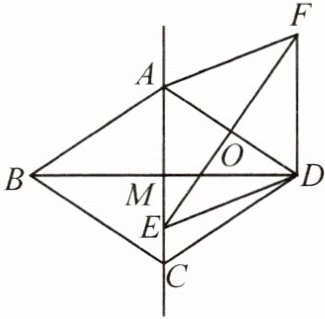15. (2025·东部新区)如图,在菱形$ABCD$中,$AB = 5$,对角线$AC$,$BD交于点M$,$AC < BD$,$S_{菱形ABCD} = 24$,$E是直线AC$上一动点,连接$DE$,以$AE$,$DE为邻边作\square AEDF$,其对角线$EF与AD交于点O$,点$E$的运动过程中,求$\square AEDF的对角线EF$的最小值.