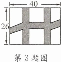3. (2025·编写)现要在一个长为40m、宽为26m的矩形花园中修建等宽的小道,剩余的地方种植花草,如图所示,要使种植花草的面积为$864m^2,$那么小道的宽度应是______。