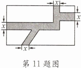11. (2025·编写)如图,在长为32米、宽为12米的矩形地面上修建如图所示的道路(图中的阴影部分),余下部分铺设草坪,要使得草坪的面积为300平方米,则可列方程为______。