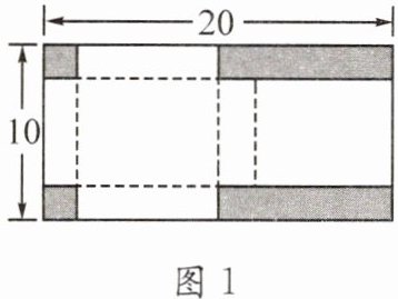 9. (2025·编写)如图1,将一张长20cm、宽10cm的长方形硬纸片裁剪掉图中阴影部分之后,恰好折成如图2所示的有盖纸盒,纸盒的底面积为$48cm^2.$求该有盖纸盒的高.