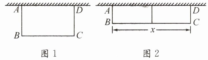 14. (2025·编写)如图1,用篱笆靠墙围成矩形花圃ABCD,一面利用旧墙,其余三面用篱笆围,墙可利用的最大长度为15m,篱笆长为24m,设平行于墙的BC边长为xm.