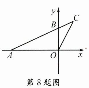 8. 如图,在直角坐标系xOy中,$A(-4,0),B(0,2)$,连接AB并延长到点C,连接CO,若$△COB\backsim △CAO$,则点C的坐标为 ()