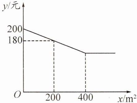 ∴ 当$x > 400$时, $y = 160$.综上所述, $y$与$x$之间的函数关系式为$y =$$\begin{cases}-\frac{1}{10}x + 200(0 \leq x \leq 400), \\ 160(x > 400).\end{cases}$