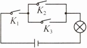 3. (2025·编写) 在如图所示的电路图中,当随机闭合开关 $ K_1 $,$ K_2 $,$ K_3 $ 中的两个时,能够让灯泡发光的概率为 。