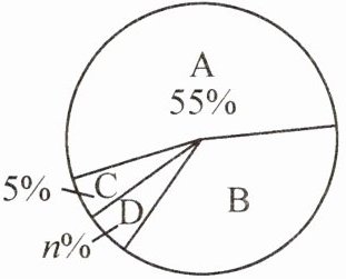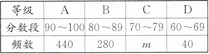 (1) 根据题意,得此次调查共抽取的选手总人数为$440 \div 55\% = 800$,所以$m = 800 \times 5\% = 40$,所以$n\% = \frac{40}{800} = 5\%$,即$n = 5$。故答案为 800;40;5。