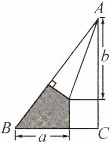 【解】设小正方形的边长为$x$,$\because a = 2$,$b = 3$,$\therefore AB = 2 + 3 = 5$。在$Rt\triangle ABC$中,$AC^{2} + BC^{2} = AB^{2}$,即$(2 + x)^{2} + (x + 3)^{2} = 5^{2}$,解得$x = 1$,$x = -6$(不合题意,舍去),$\therefore S_{\triangle ABC} = \frac{1}{2} \times 3 \times 4 = 6$,$S_{阴影} = \frac{1}{2} \times 2 \times 1 \times 2 = 2$,$\therefore$针尖落在阴影区域内的概率$= \frac{2}{6} =\frac{1}{3}$。