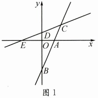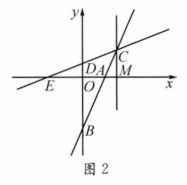 26. (12 分)如图 1,在平面直角坐标系中,直线 $y = 2x + b$ 与 $x$ 轴、$y$ 轴分别交于点 $A$,$B$,$S_{\triangle AOB} = 4$,$C(3,m)$ 是直线 $AB$ 上一点,在直线 $AB$ 左侧过点 $C$ 的直线交 $y$ 轴于点 $D$,交 $x$ 轴于点 $E$.