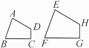 2. (2023·龙泉驿)如图,四边形$ABCD\backsim四边形EFGH$,$\angle A= 80^{\circ}$,$\angle C= 90^{\circ}$,$\angle F= 70^{\circ}$,则$\angle H$等于____。