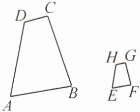 (2)(2025·编写)如图,四边形$ABCD\backsim四边形EFGH$,$\angle A= 70^{\circ}$,$\angle B= 80^{\circ}$,$\angle E= 70^{\circ}$,$\angle H= 120^{\circ}$,$AD= 18$,$EF= 5$,$FG= 7$,$EH= 6$,求$\angle G的度数和AB$,$BC$的长。