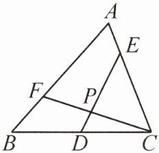 15. (2025·编写)如图,在三角形ABC中,D为BC的中点,AF= 2BF,CE= 3AE,连接CF交DE于点P.求$\frac{EP}{DP}$的值.
