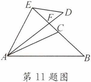 11. (2025·编写)如图,△ABC∽△ADE,BC的延长线过点E,∠ACB= ∠AED= 105°,∠CAD= 10°,∠B= 50°,则∠DEF的度数是______.