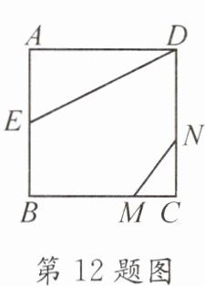 12. (2025·编写)如图,正方形$ABCD$的边长为8,$AE= EB$,$MN= 2\sqrt {5}$,线段$MN的两端在CB$,$CD$上滑动,当$CM= $____时,$\triangle ADE与\triangle CMN$相似.