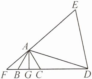 14. (2023·武侯)如图,已知$\triangle ABC$是等边三角形,点$D在边BC$的延长线上,连接$AD$,以$AD为边在直线AD的右侧作等边\triangle ADE$,延长$EA交直线BC于点F$.