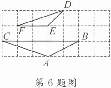6. (2022·锦江)如图,在正方形网格上有两个相似三角形$\triangle ABC和\triangle EDF$,则$\angle ABC+\angle ACB$的度数为()