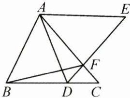 23. (8分)如图,在$\triangle ABC$中,点$D$在边$BC$上,$\angle ADE=\angle ABC$,$\angle EAF=\angle FDC$,$DE$与$AC$相交于点$F$.