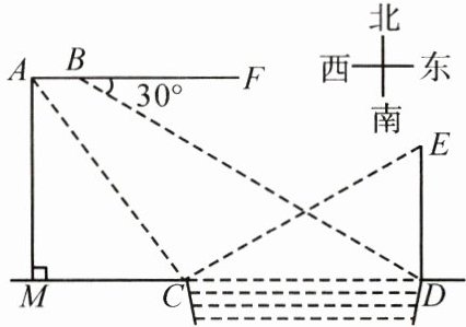(2) 根据题意可知 $\angle ECD=\alpha,AB=30m,\angle FBD=30^{\circ}$. 由