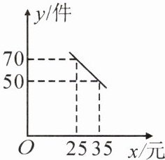 (1)设$y$与$x$之间的函数表达式为$y = kx + b(k ≠ 0)$。将点$(25, 70)$,$(35, 50)$代入,得$\begin{cases}25k + b = 70,\\35k + b = 50,\end{cases}$解得$\begin{cases}k = - 2,\\b = 120,\end{cases}$